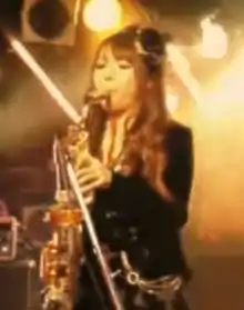 During her second year, she would do live performances on a pedestrian bridge after school, and received her first tip from a man in work clothes. That same year, she went to see a performance of the Glenn Miller Orchestra, and after their performance she waited for them afterwards to play the saxophone, which impressed the members. The members asked if she could join them, but she refused citing her school.[4] She would later collaborate with them multiple times later in her career.[5][6]