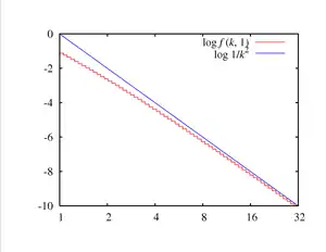 Probability mass function ![]() Yule–Simon PMF on a log-log scale. (Note that the function is only defined at integer values of k. The connecting lines do not indicate continuity.) | |||