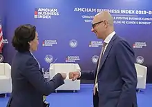 - "Fjalimi i Ambasadores Yuri Kim në Indeksin e Biznesit të Dhomës Amerikane të Tregtisë". Ambasada e SHBA në Shqipëri (in Albanian). 2020-06-29. Retrieved 2021-04-28.