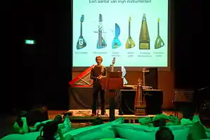 The Springtime is an experimental electric guitar with seven strings and three outputs. The first prototype of this instrument, created in 2008, was made for guitar player Laura-Mary Carter of Blood Red Shoes.[9][11][12][13] Afterwards he also made copies for Lou Barlow and dEUS' Mauro Pawlowski. For John Schmersal of Enon he built the Twister guitar, an alternate version of the Springtime.[9] In 2009 he finished instruments for The Dodos, Liam Finn, HEALTH, Micachu and Finn Andrews of The Veils.[6][9] For The Dodos and Finn he created electric 24 string drum guitars called the Tafelberg and for Andrews an electric 17-string harp guitar called the Burner guitar. He also started to perform again after a Perpignan Festival hosted by Vincent Moon and Gaspar Claus.[9] Meanwhile, he continued to build instruments for artists such as These Are Powers, Women and Kate Nash. For his own musical career he develops a 25-meter electric long-string instrument, often featured at his performances.