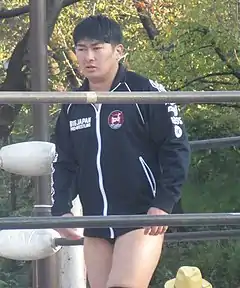 With a background in sumo,[2] Aoki joined the Big Japan Pro Wrestling dojo in April 2016 after being scouted by Yuji Okabayashi whilst in high school.[2] He wrestled an exhibition match in November 2016 before making his official debut on January 17, 2017, in a losing effort against his mentor Okabayashi.[3][4] In May, he joined BJW's newly established junior heavyweight division, Strong J, and entered the tournament to crown the inaugural BJW Junior Heavyweight Championship.[5] On June 4, Aoki scored his first singles win in a shocking upset against veteran Shinobu.[6] Despite this, he would finish the tournament bottom of the standings having lost his four other matches. Having defeated the eventual champion Shinobu, he unsuccessfully challenged him to a title match on November 1.[7] In 2017, Aoki also made several appearances for major promotion All Japan Pro Wrestling, including their 45th anniversary show.[8] In March 2018, Aoki entered his first Ikkitousen Strong Climb where he managed to pick up win over Yasufumi Nakanoue.[9] In August, he also entered his first Saikyo Tag League with Kazuki Hashimoto as part of the Strong Style Block; they picked up two wins and did not progress to the knockout stage. On October 8, after Hashimoto had defended his BJW Junior Heavyweight Championship against Tatsuhiko Yoshino, Aoki challenged him to a match at Ryōgokutan, BJW's annual Ryōgoku Kokugikan show and backed up his claim when Aoki pinned Hashimoto in a six man tag on October 25.[10] At Ryōgokutan 2018, on November 11, Aoki lost to Hashimoto.[11] In Pro Wrestling Zero1, he participated in the 2019 Fire Festival and scored eight points in Block A with a win over Asuka and a draw against Super Tiger.[12] On September 15, Aoki defeated former WWE star Tajiri to win the BJW Junior Heavyweight Championship, the first championship of his career.[13] He made his first successful title defence at Ryōgokutan 2019, on November 4, defeating Kota Sekifuda, Tajiri and Tatsuhiko Yoshino in a four way match.[14] Aoki made three further successful title defences before entering the 2020 Ikkitousen Strong Climb. After only one win in three matches, Aoki's tournament was already over by March 23, however, the remaining tournament matches would be cancelled due to the COVID-19 pandemic and Aoki would finish joint last with Yasufumi Nakanoue and Takuya Nomura.[15] On October 21, Aoki lost the BJW Junior Heavyweight Championship to Tatsuhiko Yoshino.[16] After the match, Aoki declared his intentions to move up to the heavyweight division, Strong BJ.[1]