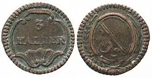 Billon coins were issued in denominations of 1 and 2 Rappen, with the 1 Rappen initially denominated as 3 Haller. Silver coins were struck for 10 Schillinge, 8, 10, 20 and 40 Batzen.