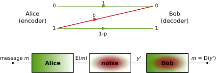 For any p, (i.e. more 0s should be transmitted than 1s) because transmitting a 1 introduces noise. As , the limiting value of is .[2]