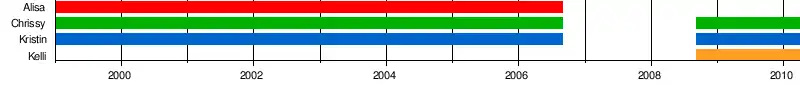 Note: ZOEgirl disbanded in September 2006. September 2008 to March 2010 represents spin-off group COLMANblue.