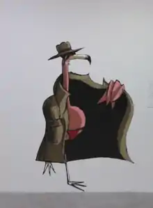 Z, an architect, launched his blog on August 28, 2007. He first began criticizing government development projects in the Tunisian capital, Tunis, and the fact that residents had no say on the matter. Z believed that the government's plans threatened the natural habitat of the city's local flamingo population. A signature pink flamingo later became his blog's mascot, and appeared in many of his future drawings.[1] In 2008, he started posting cartoons on DébaTunisie. Among his first drawings was one of a small demonstration by a group of pink flamingos protesting the government's projects.[2] His first cartoon featuring the country's president, Zine El Abidine Ben Ali, was posted in March 2009, ahead of the upcoming presidential election that same year, which depicts men in a mosque bowing in the direction of a mural portrait of Ben Ali instead of Mecca.[3]