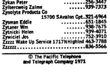Zzzzzz was launched by Bob Bilkiss of West Los Angeles, who originally operated the service from his residential phone line, in February 1970.[4] Bilkiss, then a student of Santa Monica College, said that Zzzzzz grew out of a whimsical desire to have the first and last entries in the Los Angeles telephone directory. He was able to obtain the first listing because the phone books of Pacific Bell used the street name as a second sort key when two entries had the same name. There was already a entry with the name "A"; Bilkiss's appeared above it because his street name started with a B. To obtain the last listing in the book, however, Pacific Bell required Bilkiss to prepare a notarized statement that "Zzzzzz" was his official nickname. He got a friend to bear witness that his "nickname" was due to his propensity for falling asleep in class.[5]