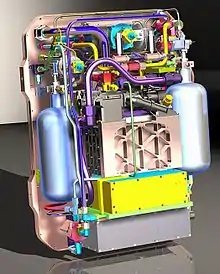 The RCA swing bed removes carbon dioxide (CO2) and controls humidity.[15] The RCA CO2 removal capability is regenerated during EVA by exposure to vacuum, making it superior to previous systems.[15] To remove CO2, the current EMU has to use either a lithium hydroxide (LiOH) canister or a Metal Oxide (Metox) canister.[15] The LiOH canister can only be used once.[15] The Metox canister can be reused post-EVA but to do so takes fourteen hours and requires auxiliary equipment, crew time and significant electricity.[15] RCA is expected to weigh less than current comparable systems.[15]