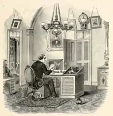 On December 10, 1844, Chandler married Letitia Grace Douglas, a native of Baltimore, who moved to New York.[1] A social entertainer, Letitia lived in Washington during the Winter throughout Chandler's career. Chandler and Letitia had one daughter, Mary Douglas Chandler, who married Senator Eugene Hale of Maine. Chandler's and Letitia's grandchildren included Frederick Hale, who was a long-serving U.S. Senator from Maine, and Chandler Hale, who served as a U.S. diplomat in Rome. Letitia, known to have a "gentle and kindly disposition" and to be "much beloved," died on February 19, 1899.[2]