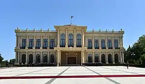 The residence is located on the shores of the Caspian Sea and is intended for use during official meetings and events. Its architecture combines elements of Western architecture with the Azerbaijani national style.[5] Many foreign dignitaries have been received in the palace, such as Israeli Prime Minister Benjamin Netanyahu,[6] Belarusian President Alexander Lukashenko,[7][8] Russian Presidents Dmitry Medvedev[9] and Vladimir Putin,[10] Georgian President Giorgi Margvelashvili.[11]