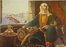 Zahir was surprised and angered by Ismail's reticence to attack. In a unilateral move to impose his authority in Uthman Pasha's jurisdiction, Zahir had his son Ahmad and other subordinate commanders collect taxes from villages in Damascus Eyalet, including Quneitra, while he dispatched Ali on a campaign against the Banu Nu'aym tribe in the Hauran, also part of Damascus.[47] In response to Zahir's indignation, Ali Bey sent him 35,000 troops under Abu al-Dhahab in May.[45] Together with Ismail's troops in Jaffa,[48] the Egyptian army captured Damascus from Uthman Pasha in June, while Zahir and his Metawali allies captured the city of Sidon from Darwish Pasha. However, Abu al-Dhahab was persuaded by Ismail that confronting the Ottoman sultan, who carried a high religious authority as the caliph of Islam, was "truly ... a scheme of the Devil" and a crime against their religion.[49] A short time after capturing Damascus, Abu al-Dhahab and Ismail withdrew from the city, whose inhabitants were "completely astonished at this amazing event", according to a chronicler of the time period.[49] The sudden turn of events compelled Zahir's forces to withdraw from Sidon on 20 June.[50]