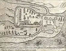 Before the Spanish arrived, the Chinese called the place the Kingdom of Sanmalan (三麻蘭) once lead by Rajah Chulan and represented at the Imperial Chinese court by his ambassador Ali Bakti.[21] The city then used to be known as Samboangan in historical records.[22][23][24][25][26][27][28] Samboangan is a Sinama term for "mooring place" (also spelled sambuangan; and in Subanen, sembwangan), from the root word samboang ("mooring pole").[29] The name was later Hispanicized as Zamboanga.