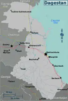 The Northern Caucasus region of Dagestan contains dozens of ethnic groups and languages.[22] It has been dogged by conflicts between the Islamic Sufis, who recognise the state, and Salafis, who reject secular rule.[22] This conflict has led Dagestan to the highest levels of violence in the North Caucasus republics.[23][24] The Russian Interior Ministry stated that of the 399 terrorist crimes in the North Caucasus in 2013, 242 were in Dagestan.[25]