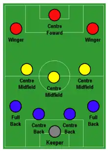 - Outside Forwards/Wingers: Zeman's formation makes a fundamental use of hard-working wingers with pace, stamina, creative abilities, and good technique and dribbling skills. Instead of hugging the touchline like traditional wingers, in his system, they are set to move into channels often functioning as inverted wingers or outside forwards. Although they are given more tactical freedom than most players in his formation, they must also be capable of scoring as well as making the right attacking movements. Off the ball, the wingers are tasked with defensive duties such as pressing opposing defenders and committing tactical fouls, in order to anticipate and take time away from them on the ball; offensively, they are also required to switch positions with their runs off the ball in order to create gaps for teammates to exploit in the opposing defence.