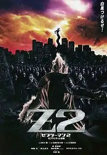 Zebraman 2: Attack on Zebra City (ゼブラーマン -ゼブラシティの逆襲-, Zeburāman -Zebura Shiti no Gyakushū-) is the 2010 sequel to the 2004 film Zebraman. The film features Show Aikawa reprising his leading role from the original, and also stars Riisa Naka and Masahiro Inoue.[2] The film's tagline is "Let's get ready to fight!" (白黒つけるぜ!, Shirokuro tsukeru ze!, a pun as it contains the kanji for "white" (白, shiro) and "black" (黒, kuro)). The film did poorly in Japanese box offices, which may be due to the film's theme of a religious war with the antagonists portrayed as analogies of the Happy Science movement in Japan.[3]