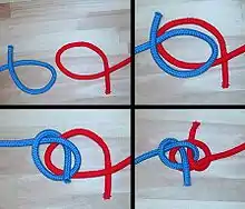 A Zeppelin bend (also known as the Rosendahl Bend) is an end-to-end joining knot formed by two symmetrically interlinked overhand knots. It is stable, secure, and highly resistant to jamming. It is also resistant to the effects of slack shaking and cyclic loading.