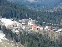 Zgornja Kapla is the site of three known mass graves or unmarked graves associated with the Second World War. All of the victims were murdered in May 1945 by the Jože Lacko Detachment of the Partisan forces. The Zgornji Pavlič Mass Grave (Slovene: Grobišče Zgornji Pavlič) is located in the woods about 100 meters (330 ft) south of the Zgornji Pavlič farm (at Zgornja Kapla no. 16). It contains the remains of about 45 Hungarian civilians.[4] The Pušnik Chapel-Shrine Grave (Grobišče pri Pušnikovi kapeli) is located about 150 meters (490 ft) northeast of the Kure farm (Zgornja Kapla no. 65). It contains the remains of a Slovene that was murdered because he had been mobilized into the German military.[5] The Sršen 3 Grave (Grobišče Sršen 3) lies on the edge of a woods about 130 meters (430 ft) below the abandoned farm at Zgornja Kapla no. 57 and 200 meters (660 ft) east of the Stojan farm. It contains the remains of a person murdered on suspicion of being an informant.[6]