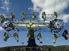 The Zipper was created by Joseph Brown under Chance Rides in 1968 in Wichita, Kansas, and registered under patent 3,596,905 in 1971.[4] The ride's basic design was based on an earlier ride called The Swooper, invented in 1928, which also featured a series of cars being pulled along a cable around an oblong framework.[4] The central difference between The Swooper and the Zipper was the ability of the Zipper's frame to rotate as the cars travel along it by cable.[4]