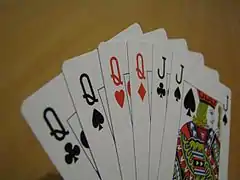 | Card rank (highest first) | Q J A 10 K 9 8 7 |